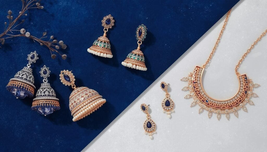 Step into a world of timeless elegance at Roshnaii — where every ornament tells a story of grace, beauty, and craftsmanship. From delicate jhumkas to modern statement pieces, our collection is designed to make you shine at every moment.