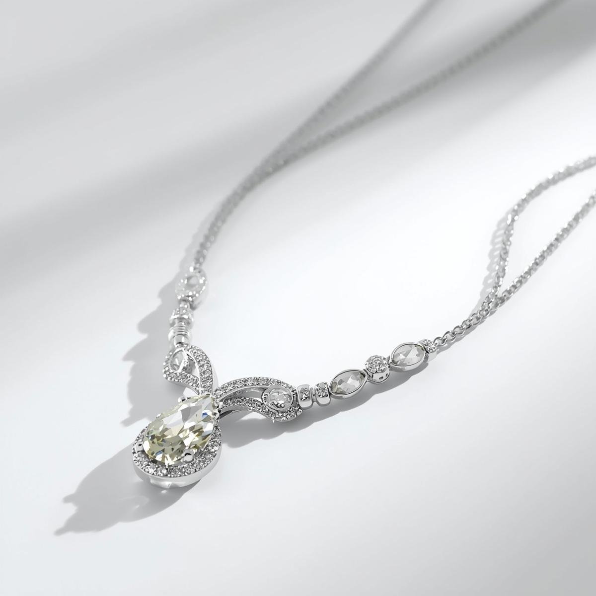 This elegant necklace is designed in a modern V-shape that makes your neck look graceful. It features high-quality white stones (Zircon) arranged in a leaf pattern, leading to a large, bright round stone in the center. The premium silver finish gives it a real diamond jewelry look, making it perfect for receptions or simple bridal wear.